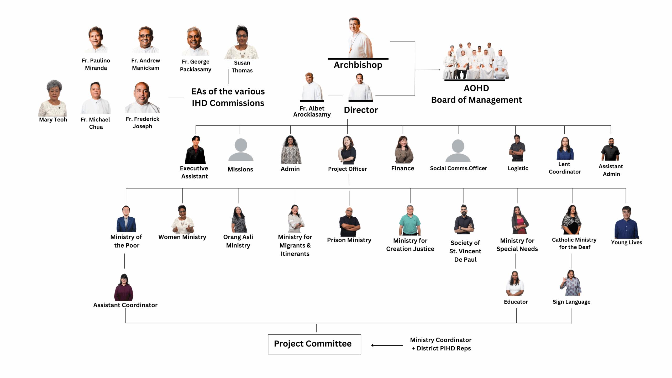 We operate under the purview of the AOHD Secretariat & Board of Management with the care of 10 Ministries, promoting Charity, Integral Human Development (IHD), Justice & Peace within the Archdiocese that oversees 5 states in Peninsular Malaysia.